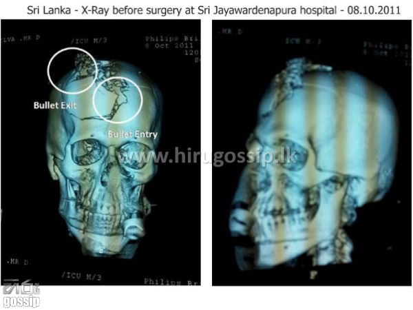 උණ්ඩ කොටස් මොළය අභ්යන්තරයටත් කිඳා බැහැලා..