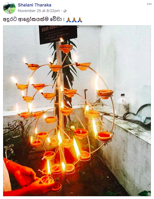 පසුගියදා ඇය මියගිය සිය හිතවතා වෙනුවෙන් විහාරස්ථානයකට පහන් වැටක් පූජා කර ඇත.